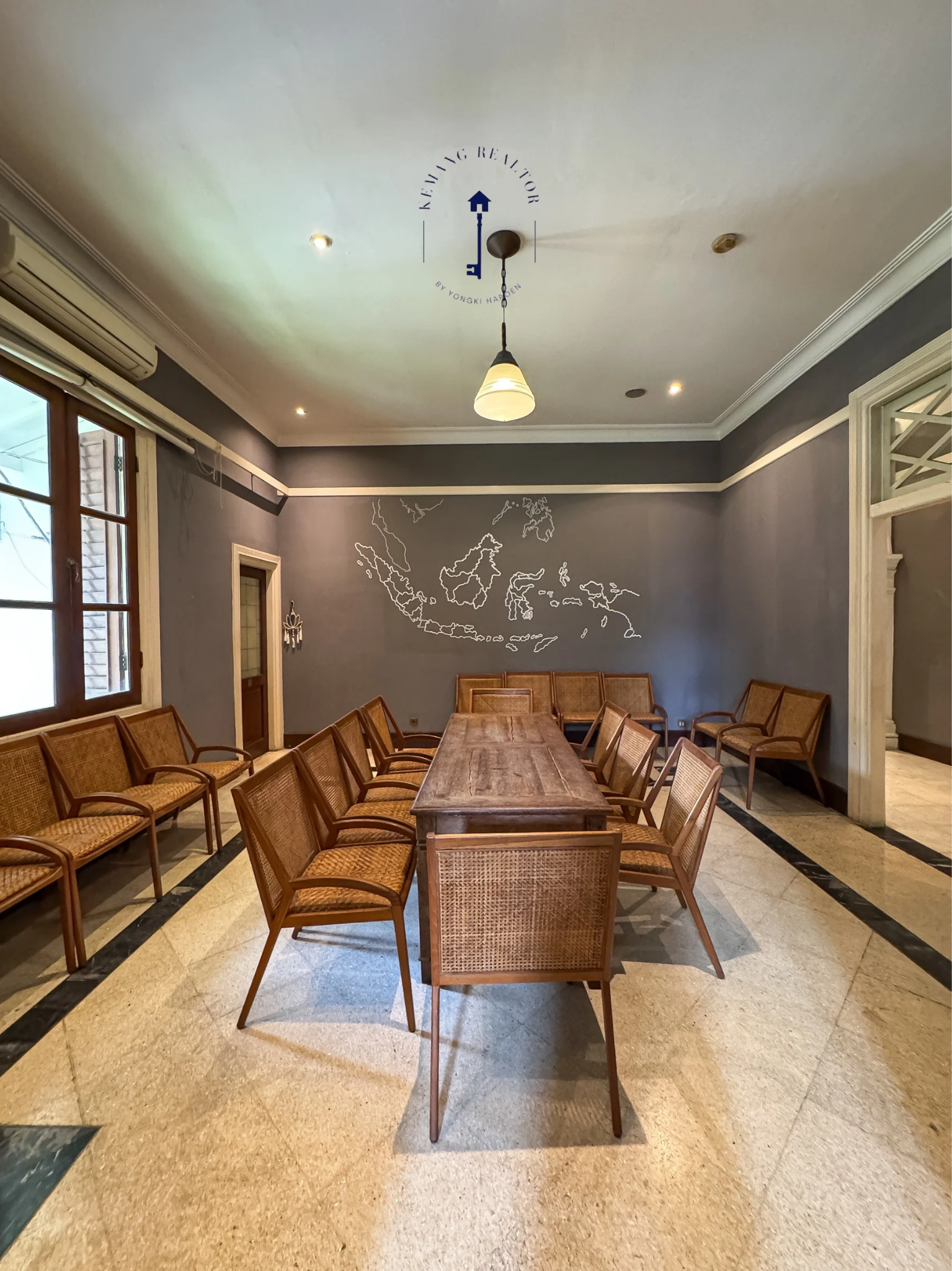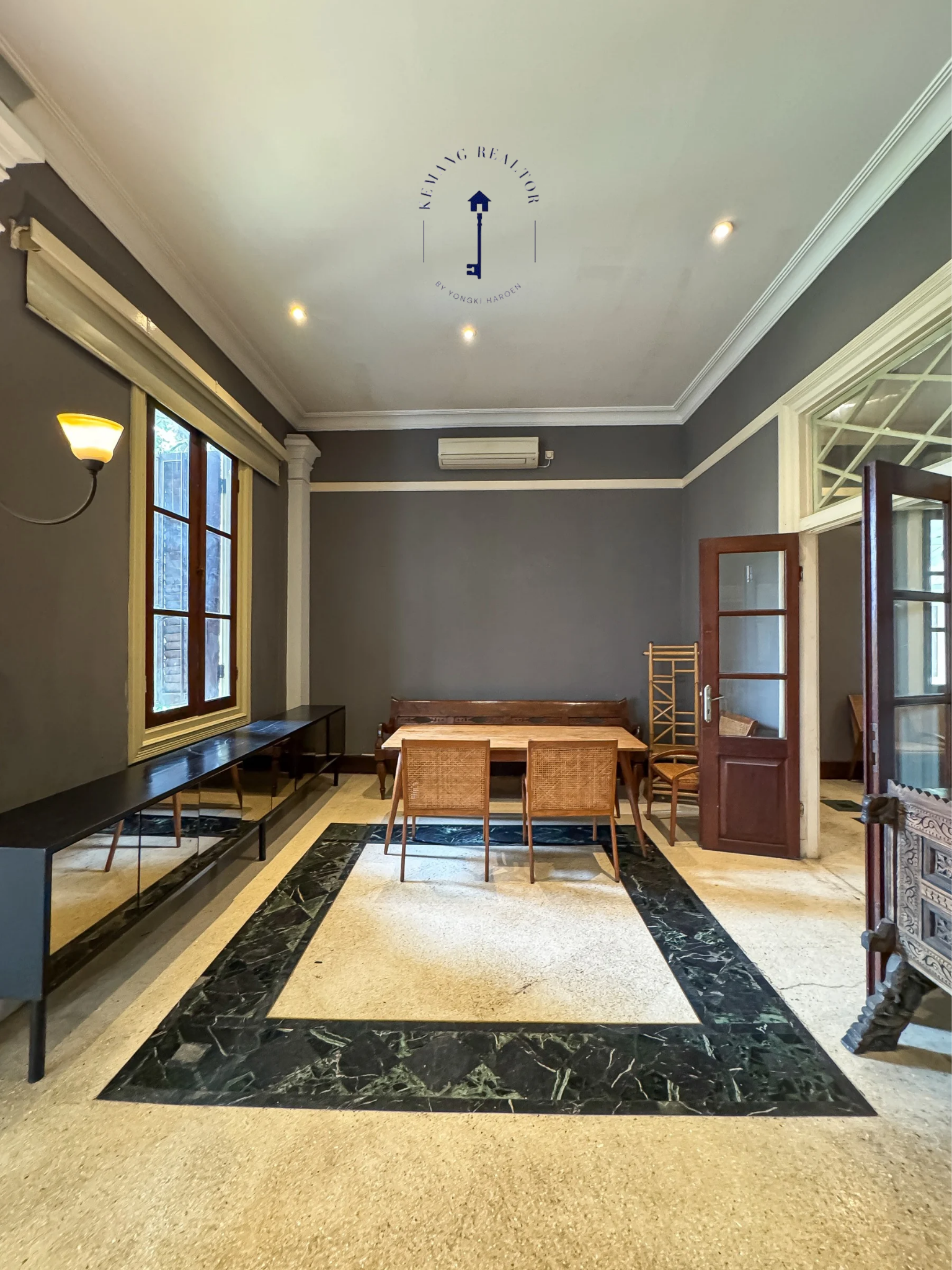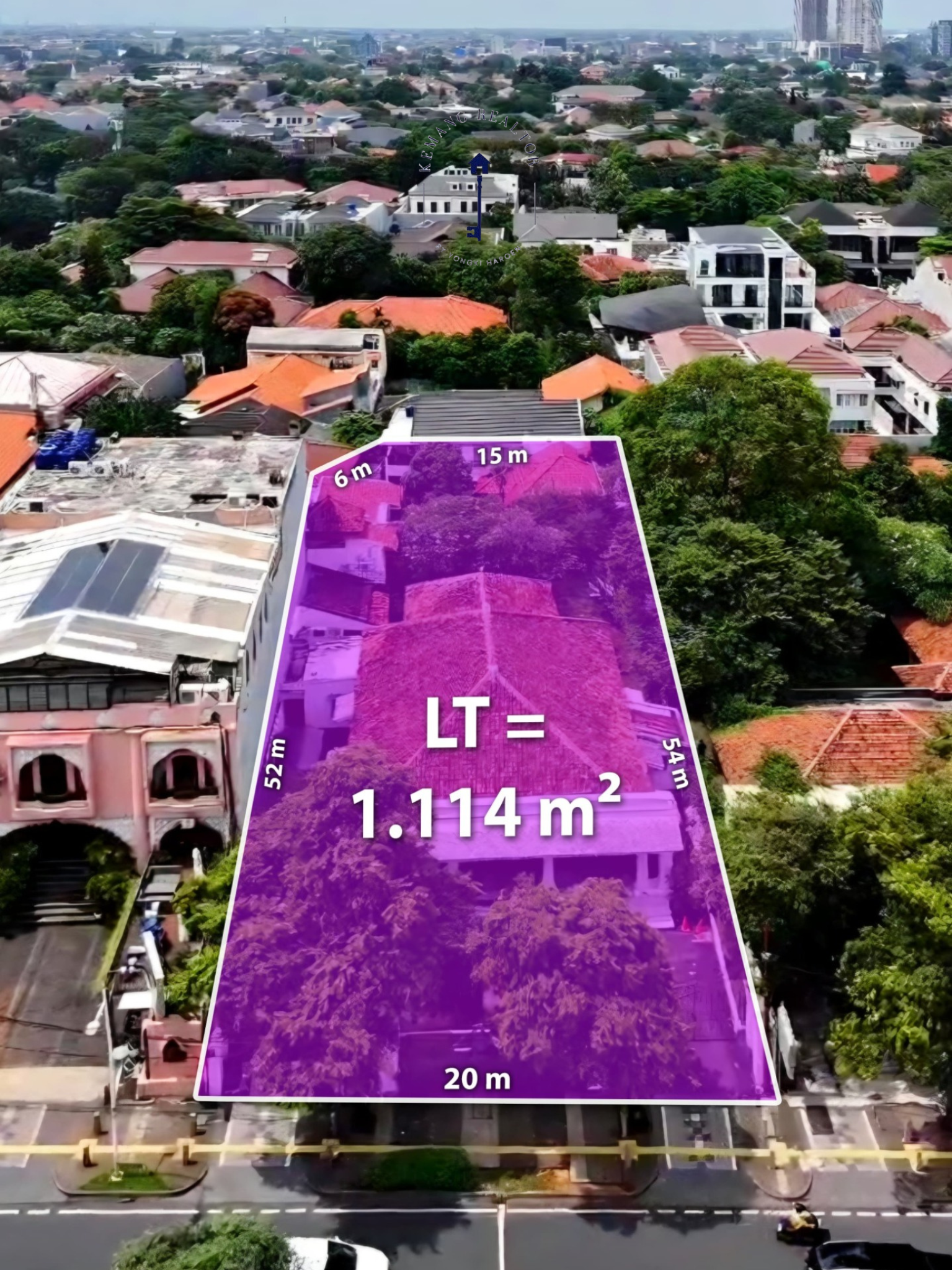 Bangunan eksklusif di jantung Kemang Raya dengan genteng, pintu, dan kayu asli dari rumah Walikota Jakarta tempo dulu. Luas tanah 1.114 m² dan bangunan sekitar 600 m², lebar muka 20 m, zonasi komersial dengan izin hingga 4 lantai. Dilengkapi taman belakang luas yang cocok untuk lounge, dining, atau event space. Ideal untuk restoran mewah, showroom prestisius, kantor kreatif, atau boutique hotel. Harga jual Rp 65 miliar atau sewa Rp 1,6 miliar per tahun (min. 2 tahun).
