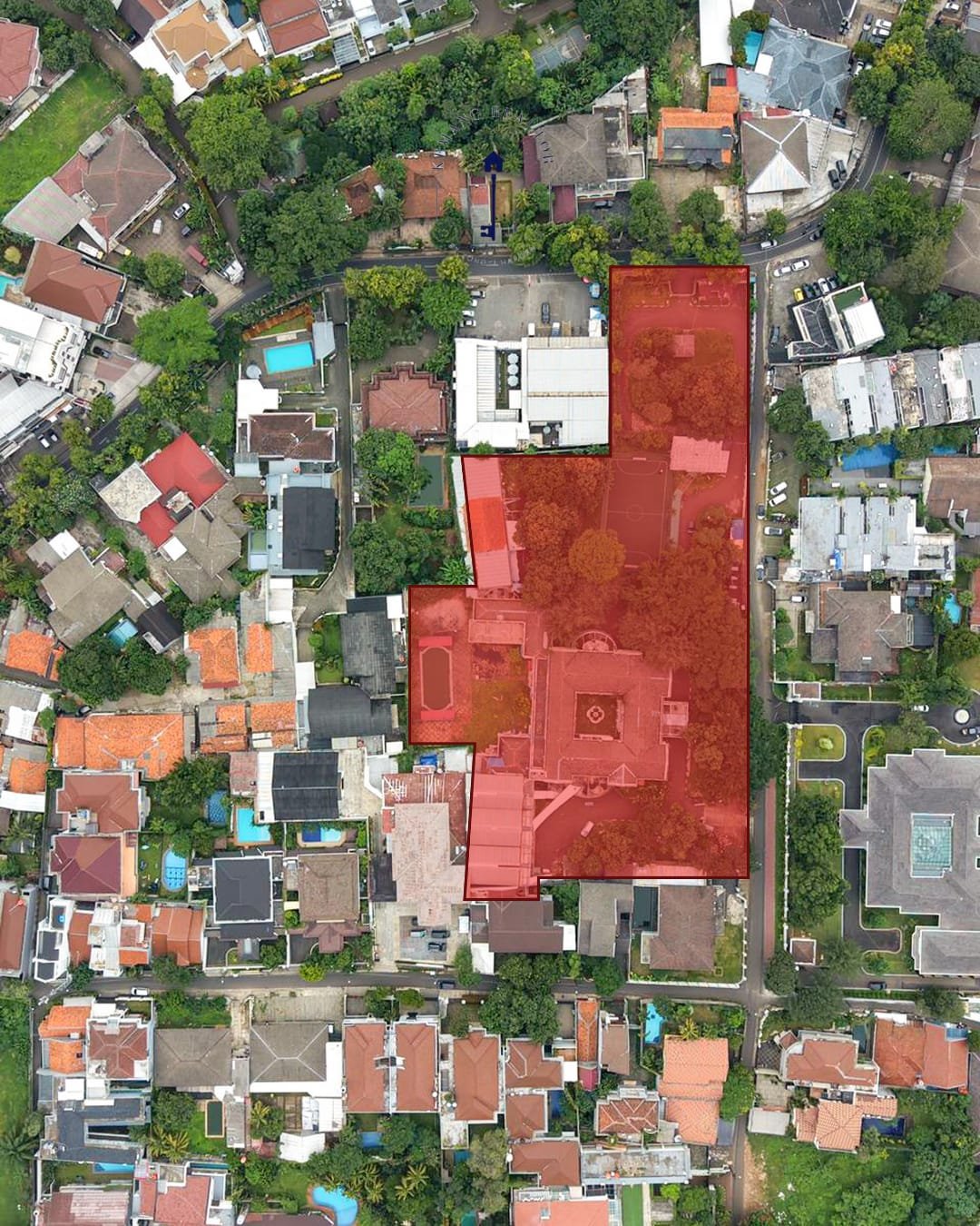 Properti ini merupakan eks fasilitas sekolah internasional dengan kondisi lahan yang sangat matang dan siap kembang. Bangunan eksisting seluas 3.000 m² masih sangat layak dipertahankan atau direnovasi, dilengkapi dengan fasilitas olahraga lengkap dan area parkir kolosal yang mampu menampung hingga 110 mobil.